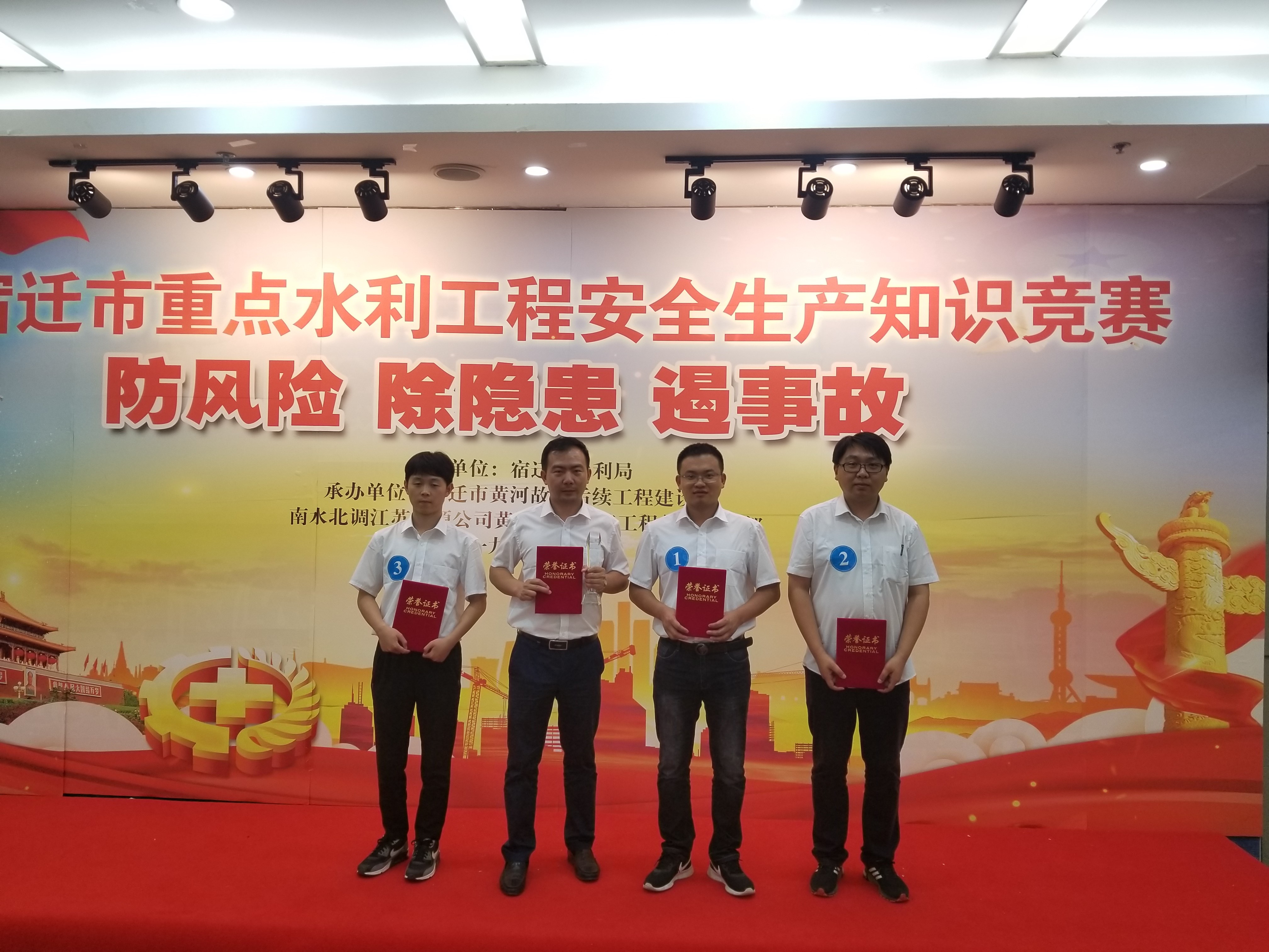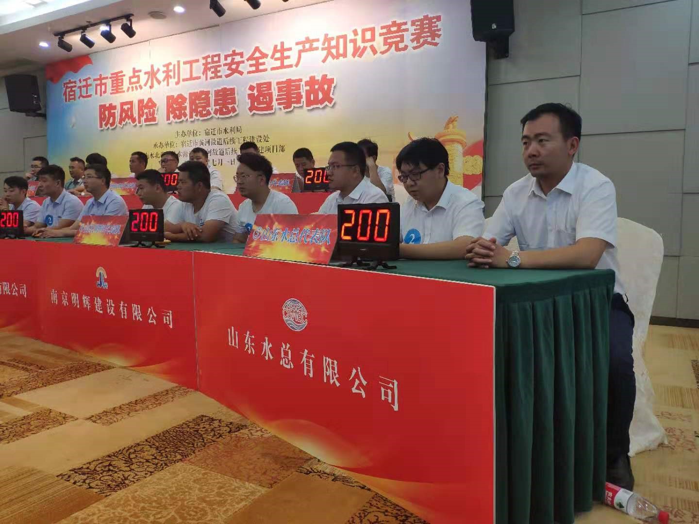 為深入推進安全生產月活動開展,普及安全生產法律知識,提高安全生產意識,筑牢安全生產防線,宿遷市水利局組織開展了“宿遷市重點水利工程安全生產知識競賽”活動。我公司宿遷市黃河故道后續工程施工3標項目經理部派出代表隊經海選、初賽、復賽多輪角逐,代表山東水總有限公司參加了總決賽,經過激烈角逐,以優異的成績榮獲第二名,展示了山東水總有限公司職工的良好風采。