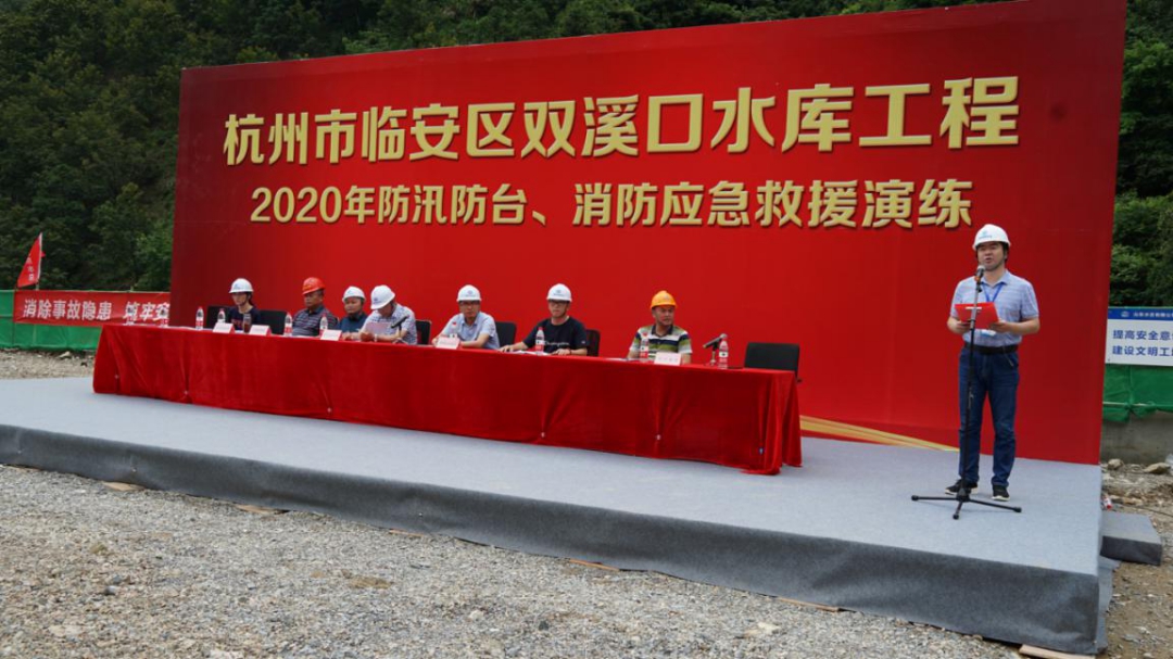 為進一步增強杭州市臨安區雙溪口水庫工程全體人員防汛防臺和消防安全意識,強化應急預案保障措施的落實,提高各參建單位應對突發性洪水和火災等事件的應急能力,確保汛期施工人員生命財產安全,減少火災事故災害損失。6月12日上午,雙溪口水庫工程法人單位杭州魯潤水電開發有限公司組織各參建單位,開展防汛防臺和消防應急救援演練活動。