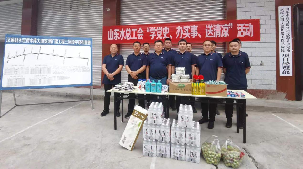 檢查組還在項目部開展了“學黨史、辦實事、送清涼”活動,詳細了解職工工作、生活情況,叮囑干部職工要增強自我保護意識,注意防暑降溫,并將防暑降溫用品送到一線員工手中,為他們送去公司黨委、工會的深切關懷。
