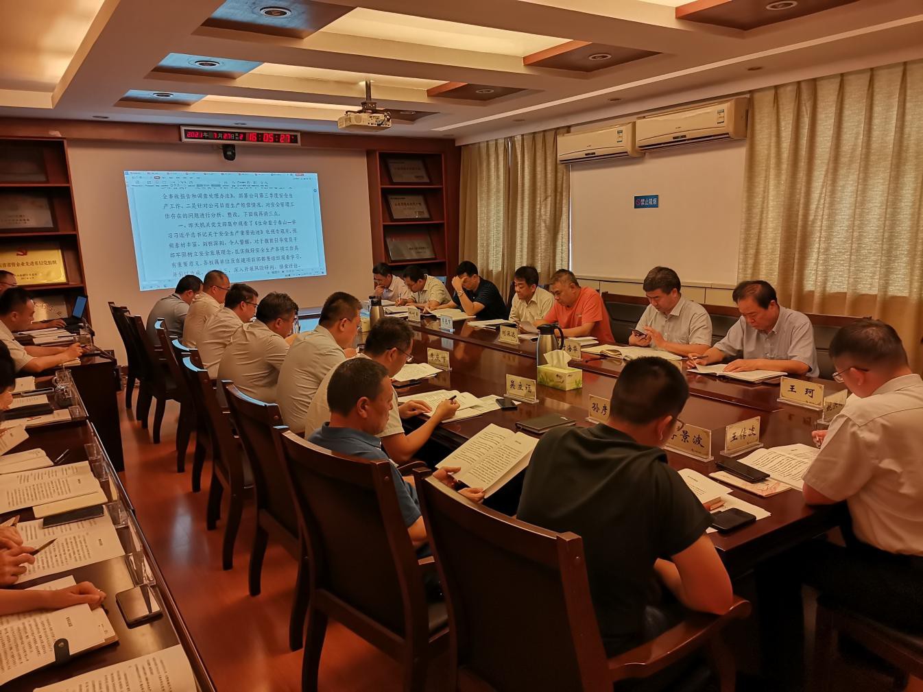 7月27日,公司召開了第三季度安全生產工作會議。公司黨委書記、董事長劉深遠出席會議并作了重要講話,黨委副書記、總經理李光市部署第三季度安全生產工作。會議由安全總監郭法文主持,公司領導班子、權屬單位負責人、總部部室負責人參加了會議。