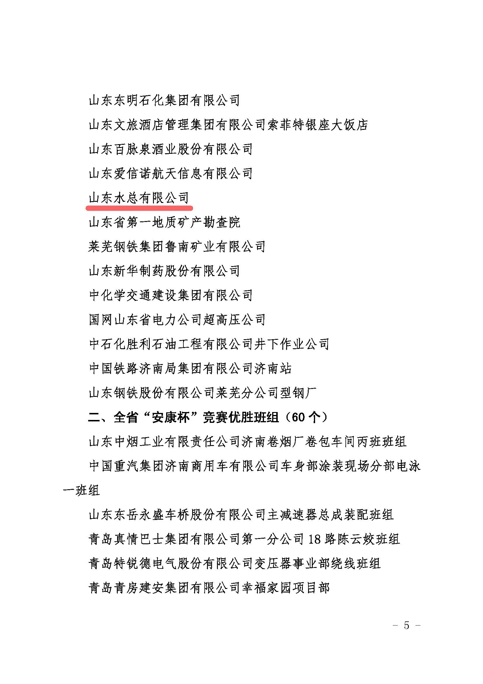 近日,山東省總工會(huì)、山東省應(yīng)急管理廳和山東省衛(wèi)生健康委員會(huì)聯(lián)合印發(fā)文件,通報(bào)了2020-2021年度全省“安康杯”競(jìng)賽活動(dòng)結(jié)果,山東水總有限公司榮獲全省“安康杯”競(jìng)賽優(yōu)勝單位稱號(hào)。