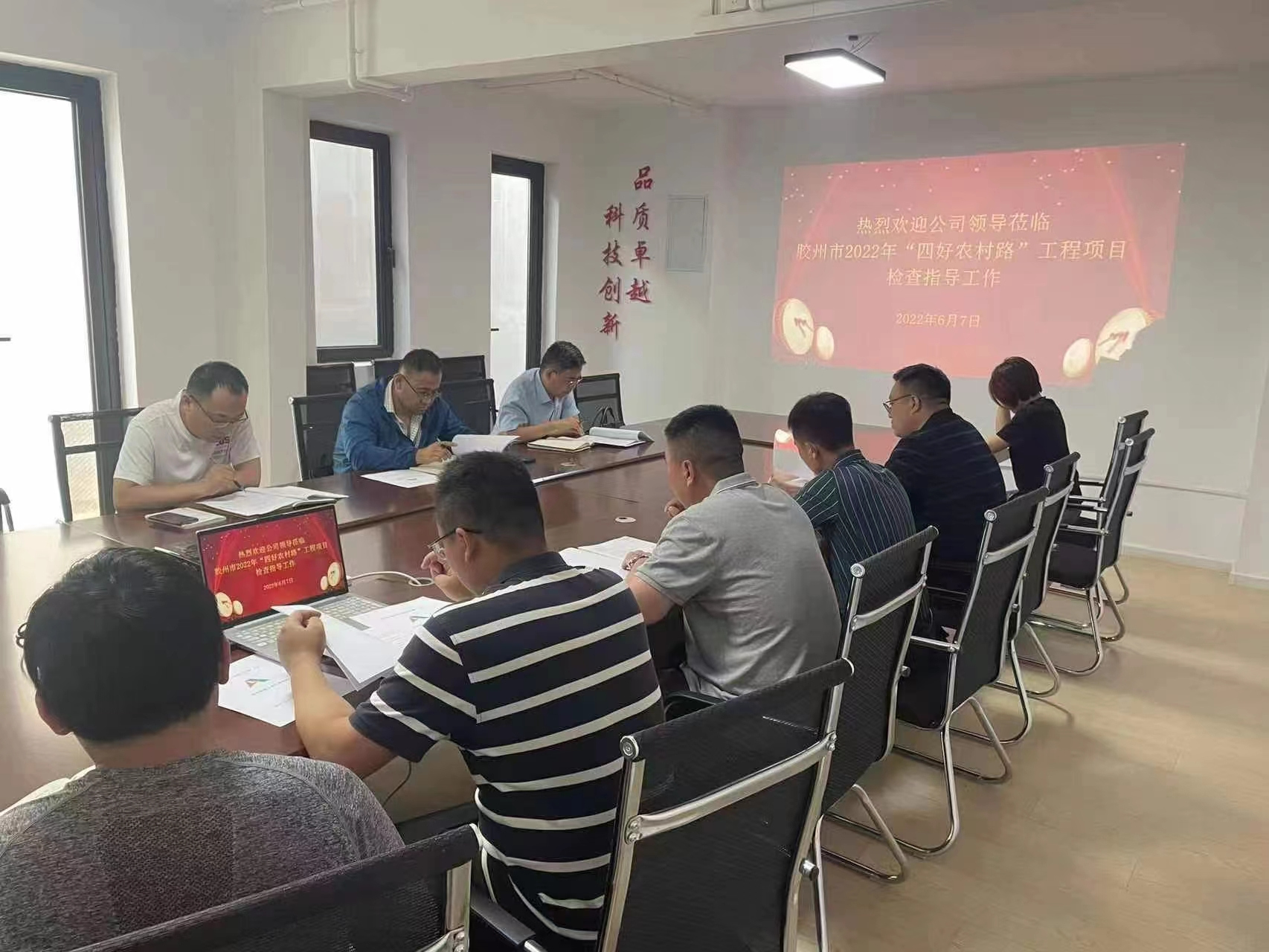 6月7日,公司安全總監郭法文、安全管理部部長向建等一行到膠州市2022年“四好農村路”工程項目開展安全檢查工作,二局有限公司副總經理、安全總監劉波,副總經理李灝陪同檢查。