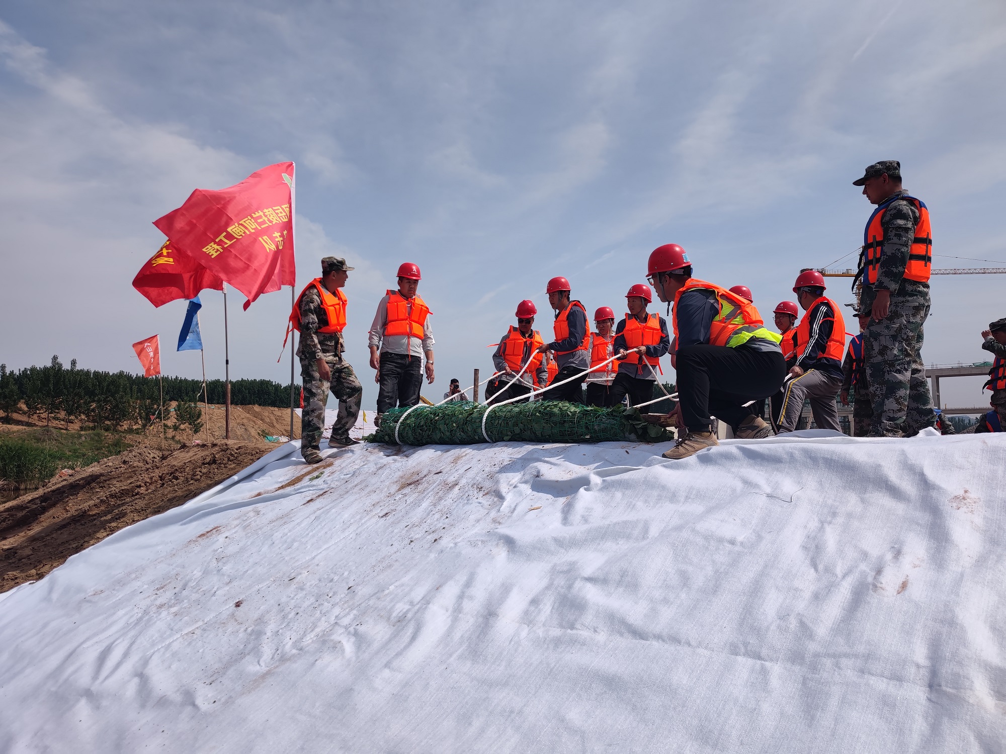 5月9日下午,第七分公司泗水縣泗河岳陵攔河閘項目部聯合泗水縣水務局、泗水縣應急局等單位開展了岳陵攔河閘工程防汛應急救援演練。本次模擬演練設置壩前坍塌搶護、壩后管涌搶護、增高子堰搶護3個演練場景。