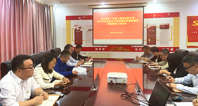 5月10日,二局有限公司黨委召開2023年度全面從嚴治黨暨黨風廉政建設和反腐敗工作會議,黨委書記、總經理王傳波主持會議,領導班子成員、中層管理人員、黨員參加會議。