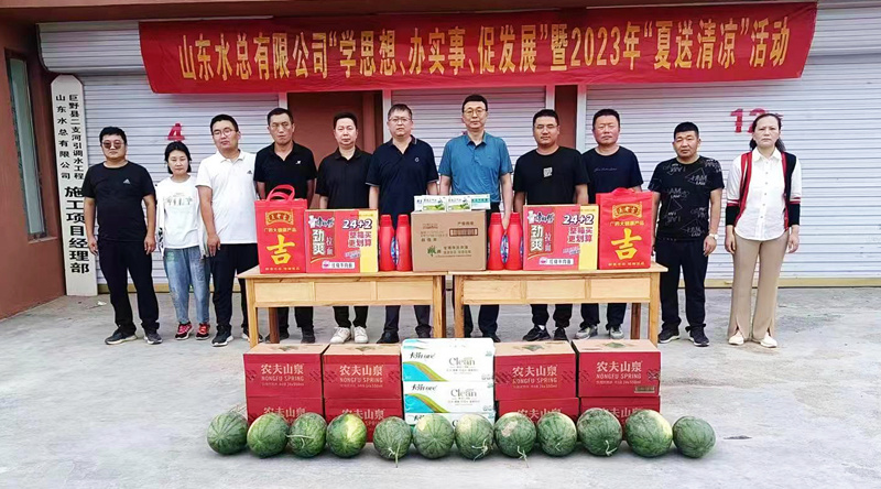 為持續(xù)推動學習貫徹習近平新時代中國特色社會主義思想主題教育走深走實,切實維護廣大職工的勞動健康權益,常態(tài)化開展“我為群眾辦實事”實踐活動,7月6日,公司總會計師楊利軍到二局有限公司巨野縣二支河引調(diào)水工程開展“學思想、辦實事、促發(fā)展”暨2023年“夏送清涼”活動。二局有限公司黨委書記、總經(jīng)理王傳波,副總經(jīng)理劉波、李灝,總會計師王佃志等陪同參加。
