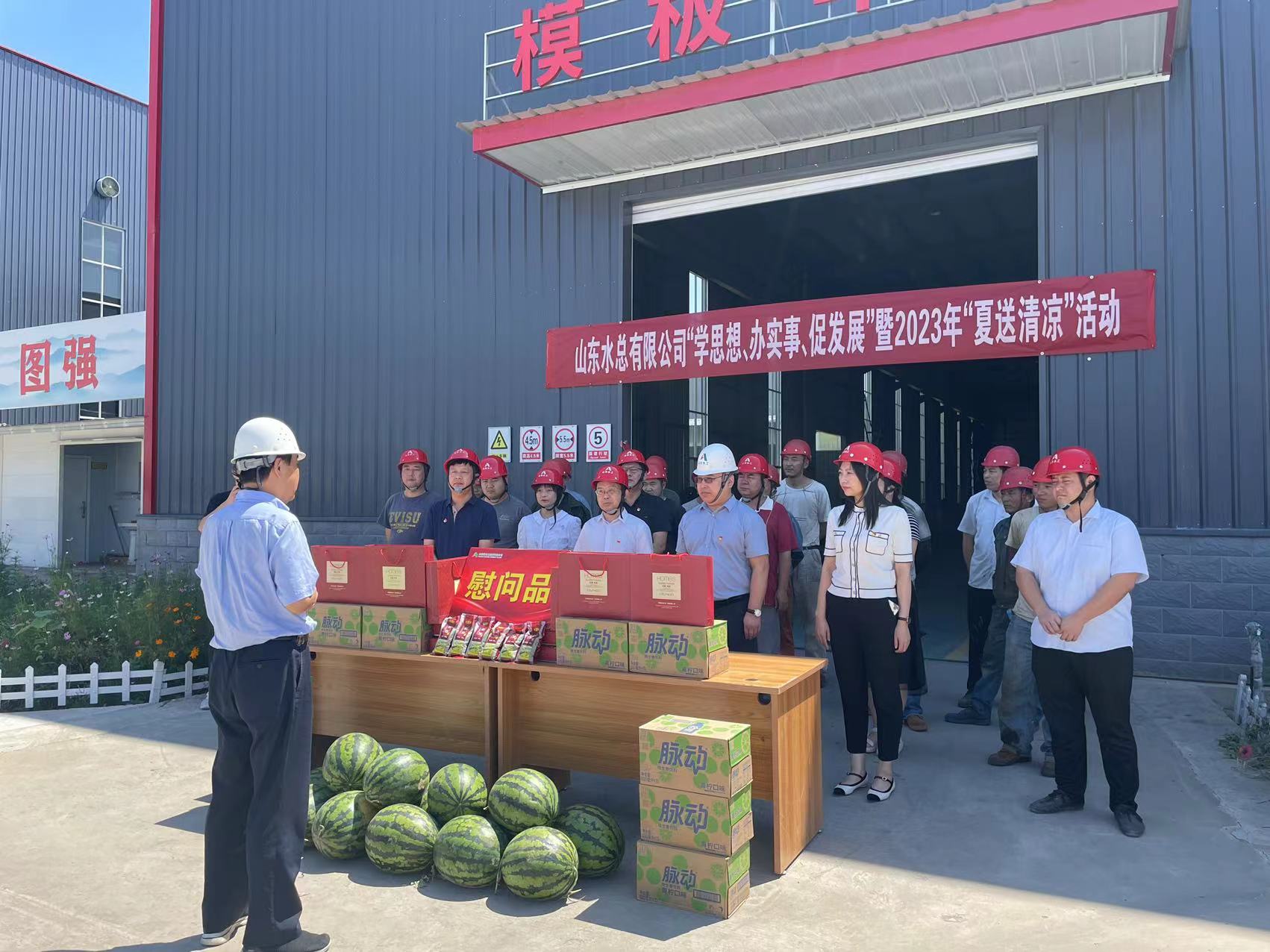 為推進學習貫徹習近平新時代中國特色社會主義思想主題教育走深走實,持續為職工群眾辦實事,傳遞公司黨委、工會對一線職工的關心關愛,7月18日,山東水總黨委委員、紀委書記朱瑞偉一行到水工機械公司開展“學思想、辦實事、促發展”暨2023年“夏送清涼”慰問活動。