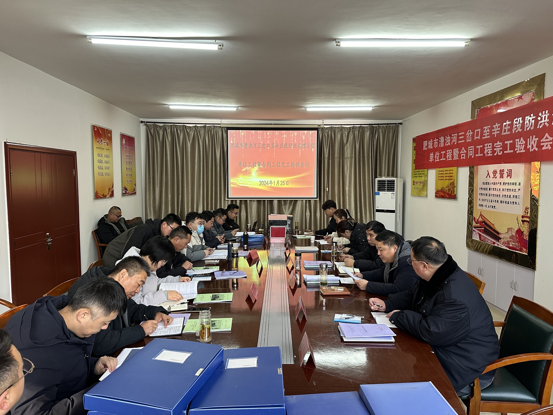近日,肥城城投河務開發有限公司主持召開肥城市漕濁河三岔口至辛莊段防洪治理工程二標段單位工程暨合同工程完工驗收會議。