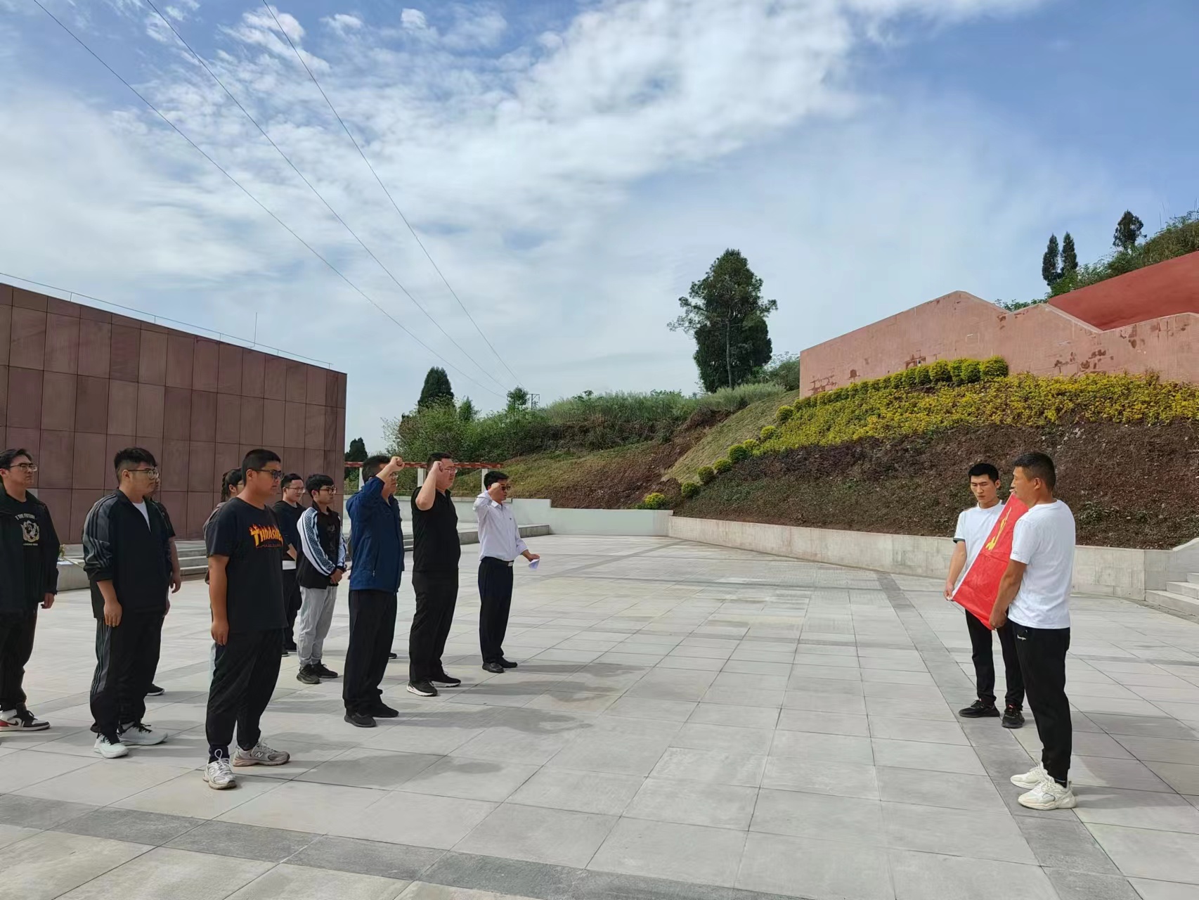 全體人員在烈士紀念碑前默哀致敬、敬獻鮮花,深切緬懷革命先烈。隨后,黨員代表錢玉同志帶領全體黨員和團員重溫入黨、入團誓詞,并依次在橫幅上鄭重簽下自己的名字,以簽名為約定,將革命精神根植于心。