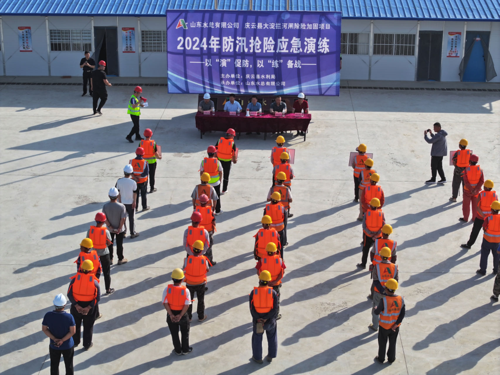 為有效應對極端天氣造成的各類突發事件,健全完善反應迅速、處置有力的防汛搶險應急工作機制,切實提高洪澇災害防范和應急處置能力,近日,基礎有限公司慶云縣大淀攔河閘除險加固項目開展了2024年防汛搶險應急演練。慶云縣水利局黨組成員、水庫運行維護中心主任楊書軍等全程觀看了本次演練。
