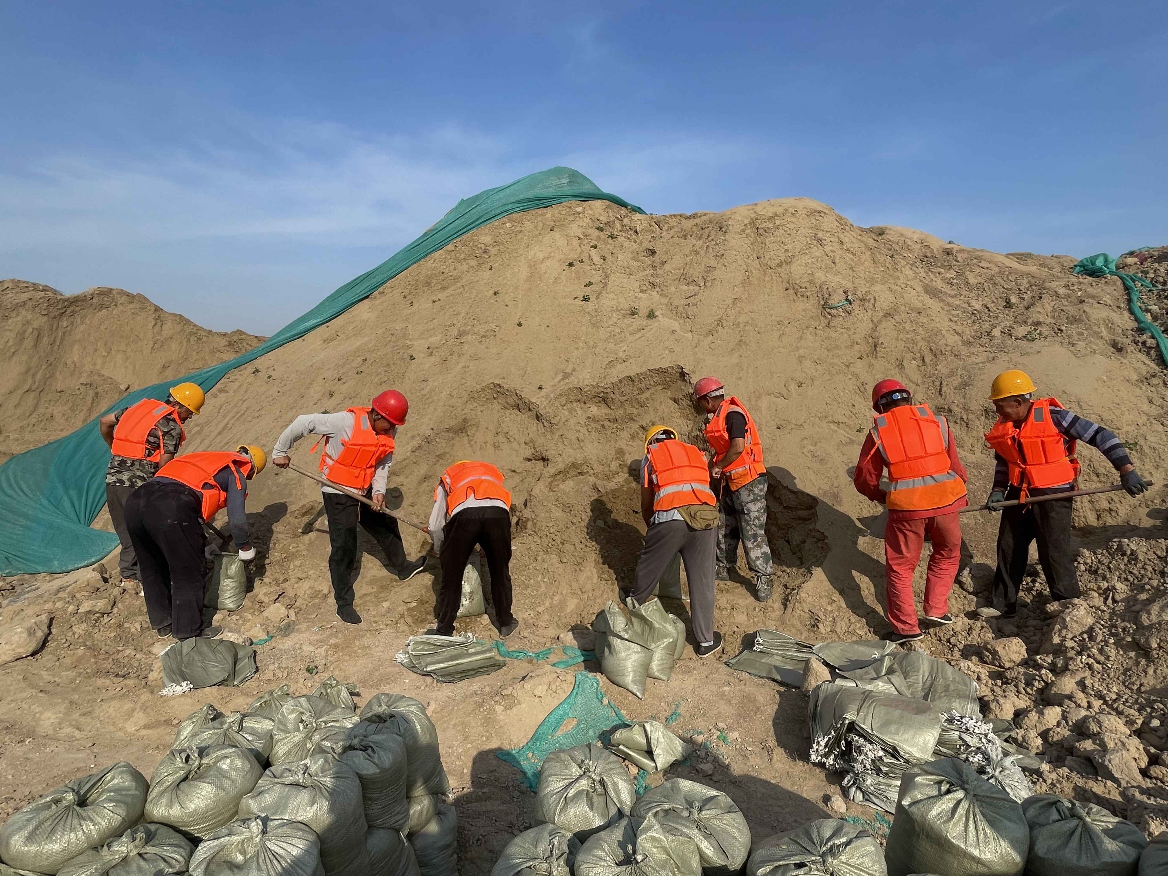 演練模擬了受連續強降雨強臺風影響,施工區域堤防出現滲水、管涌、坍陷等險情場景,分為滲水搶險、管涌搶護、搶筑子堤共3個科目,設置了現場警戒組、應急搶險組、醫療救護組、后勤保障組、黨員先鋒隊等5個行動小組,共50余人參加。演練開始后,項目部立即啟動應急響應,統一指揮調度搶險救援工作,各小組成員按指令立即行動。整個演練過程有條不紊,現場人員反應迅速,措施妥當、處置有效,現場指揮和演練人員配合默契,圓滿地完成了演練任務,達到了預期目標和成效。