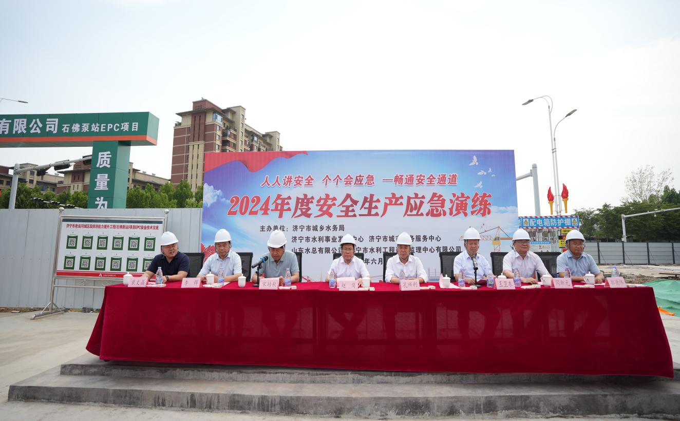 6月7日下午,濟寧市石佛泵站項目部聯合濟寧市城鄉水務局、濟寧市城市水務服務中心、濟寧市水利事業發展中心等單位開展安全生產應急演練,公司黨委書記、董事長裴文晶、安全總監郭法文受邀出席本次演練活動,演練共設置觸電事故、高處墜落、火災、防洪度汛4個科目。