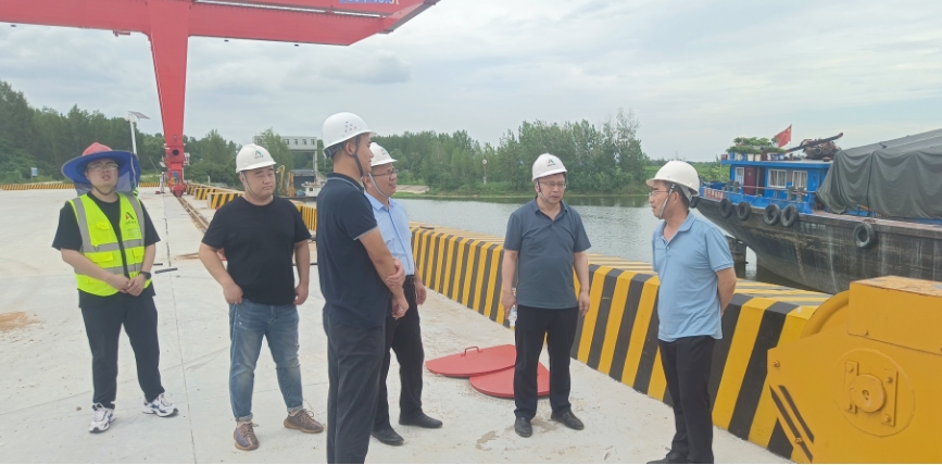 袁英杰一行首先到棗莊市中區西泇河引調水工程項目實地考察,聽取了參建人員對項目概況、工程進度、施工重難點等情況的介紹。向奮戰在高溫一線的職工表示慰問,并送來了防暑降溫物品,叮囑參建人員在高溫天氣時要注意防暑和勞動安全,合理安排好作息時間,保證身體健康。隨后又來到棗莊港薛城港區薛城作業區泊位改造提升項目進行調研,深入施工現場,實地查看了項目進展情況。袁英杰強調,要牢固樹立安全生產責任意識,預防極端天氣帶來的安全隱患,為項目建設保駕護航,確保項目建設有序推進。