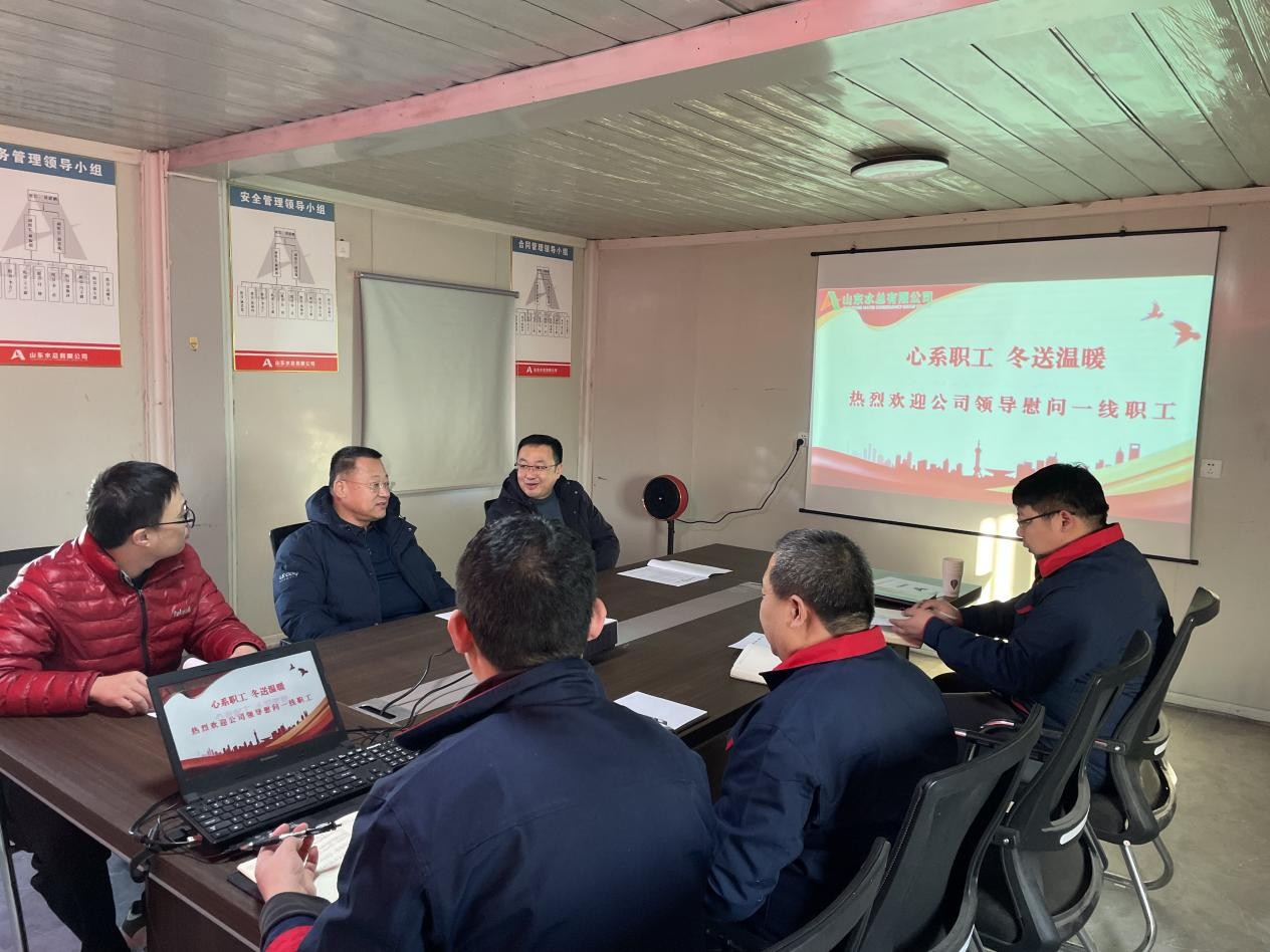 公司黨委副書(shū)記、職工董事、工會(huì)主席王坤林一行蒞臨第二分公司漳衛(wèi)河聊城段綜合治理(引調(diào)水)工程施工1標(biāo)項(xiàng)目部開(kāi)展“心系職工,冬送溫暖”慰問(wèn)活動(dòng)