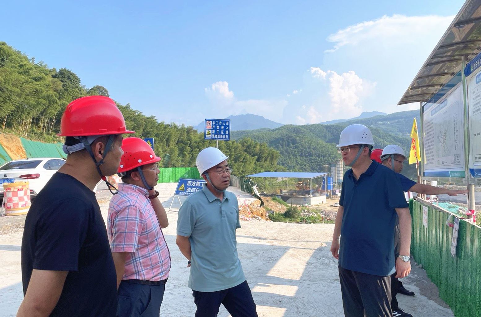 近日,公司黨委委員、副總經理袁英杰一行到二局有限公司四川省宜賓市長寧縣澤鴻水庫工程、蓬安縣五星花園片區改造項目開展檢查指導工作,二局有限公司總經理王傳波等人陪同。