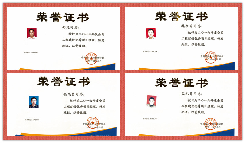 公司向建等四名同志被評為2016年度全國工程建設優秀項目經理
