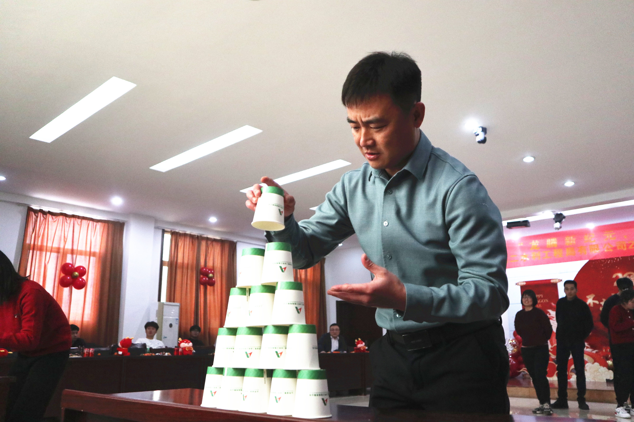 此次運動會集趣味性、協作性、競爭性于一體,包括同舟共濟、疊紙杯接力、勺子大作戰、雙龍戲珠、趣味保齡球、蒙眼擊鼓、袋鼠跳跳、夠級、摜蛋等多個項目。比賽現場既緊張激烈,又妙趣橫生,每項運動不僅考驗參賽選手的體力與動作協調性,更是參賽隊伍團結協作和智慧的完美比拼。賽場上,加油聲、吶喊聲此起彼伏,歡聲笑語不絕于耳。