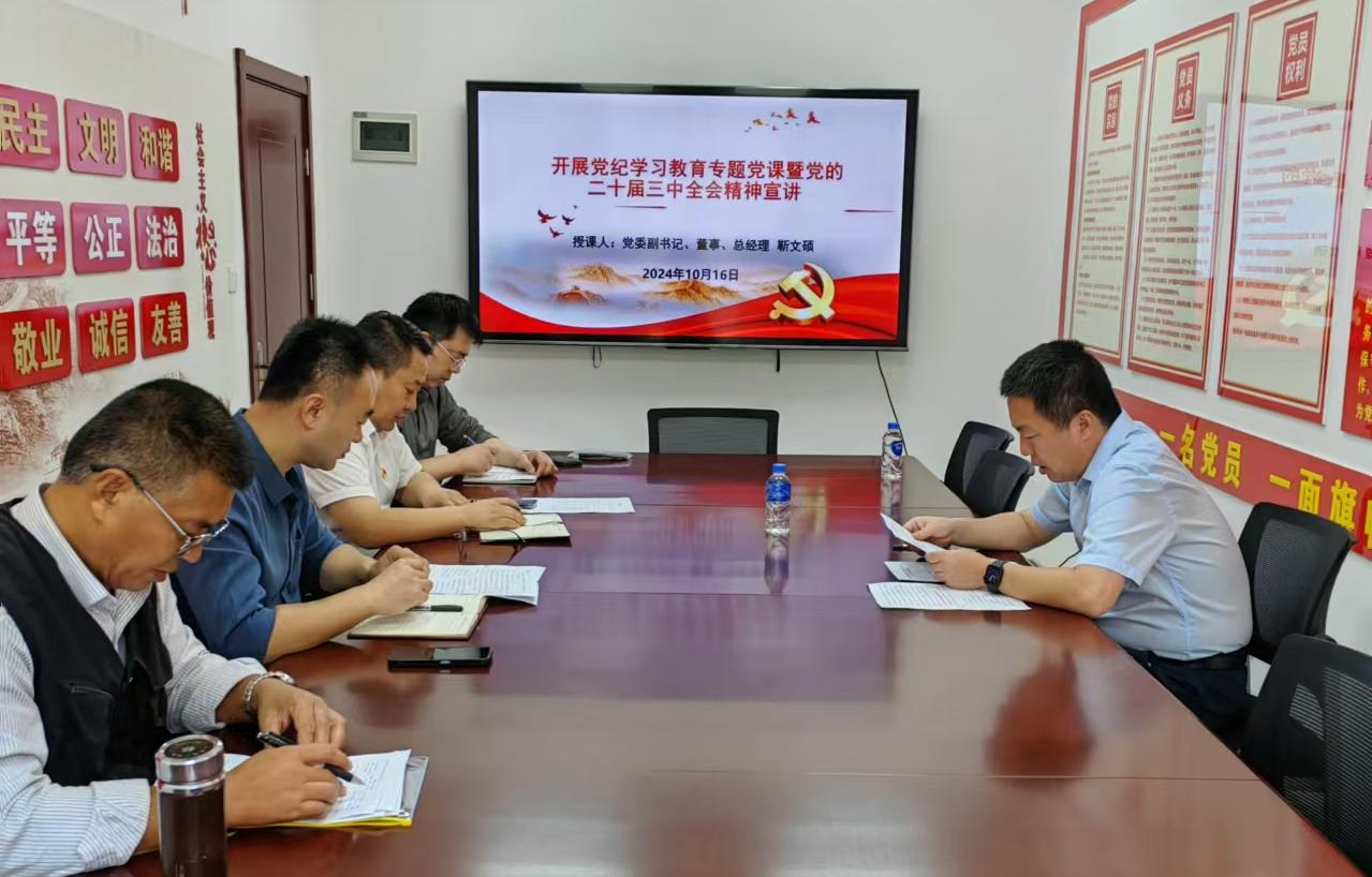 10月16日,公司黨委副書記、董事、總經理靳文碩到建筑勞務公司開展黨紀學習教育專題黨課暨黨的二十屆三中全會精神宣講,勞務公司全體黨員參會。