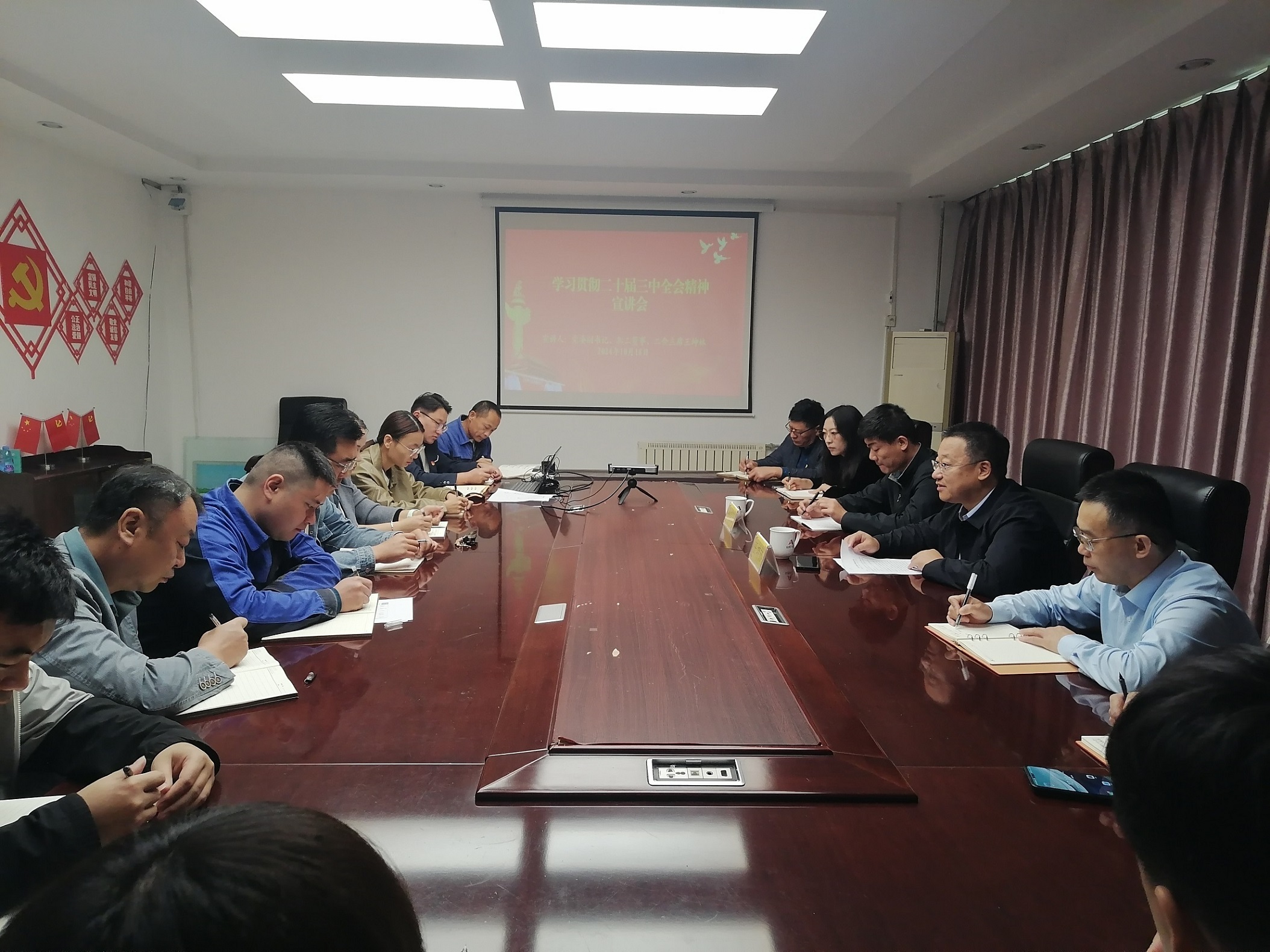 10月18日,公司黨委副書記、職工董事、工會主席王坤林到水工機械公司開展黨的二十屆三中全會精神專題宣講,水工機械公司全體職工參會。