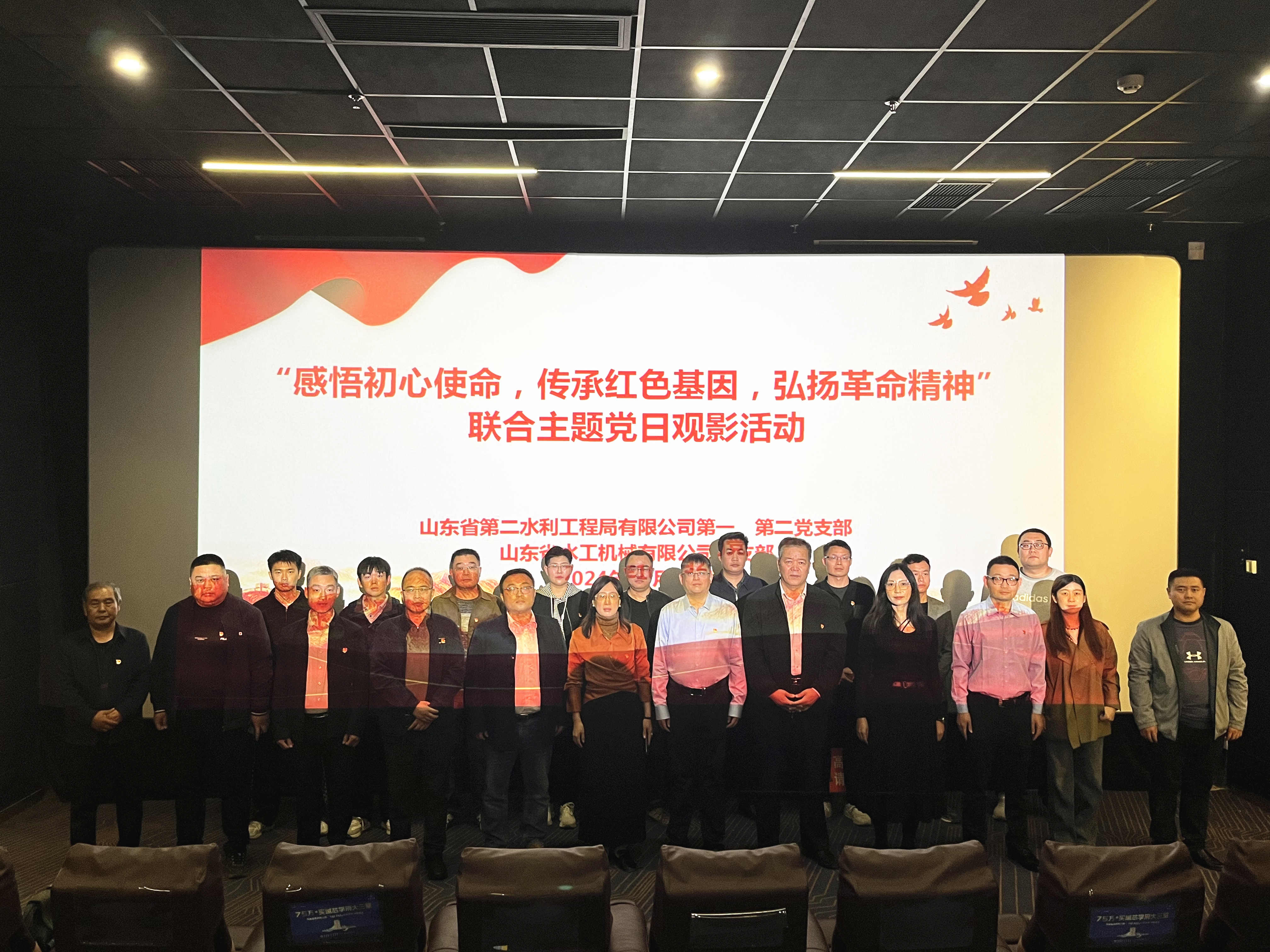 宣講結束后,二局有限公司第一、第二黨支部與水工機械公司黨支部組織黨員們到曲阜藍海影城共同觀看了紅色電影《一生交給黨》。該部影片根據中國共產黨優秀黨員、杰出的無產階級革命家周逸群的故事改編而成,講述了周逸群等革命烈士為追求真理,救民于水火而拋頭顱灑熱血的事跡,生動展現了共產黨人為了初心使命勇往直前、百折不撓、不畏犧牲的革命精神。
