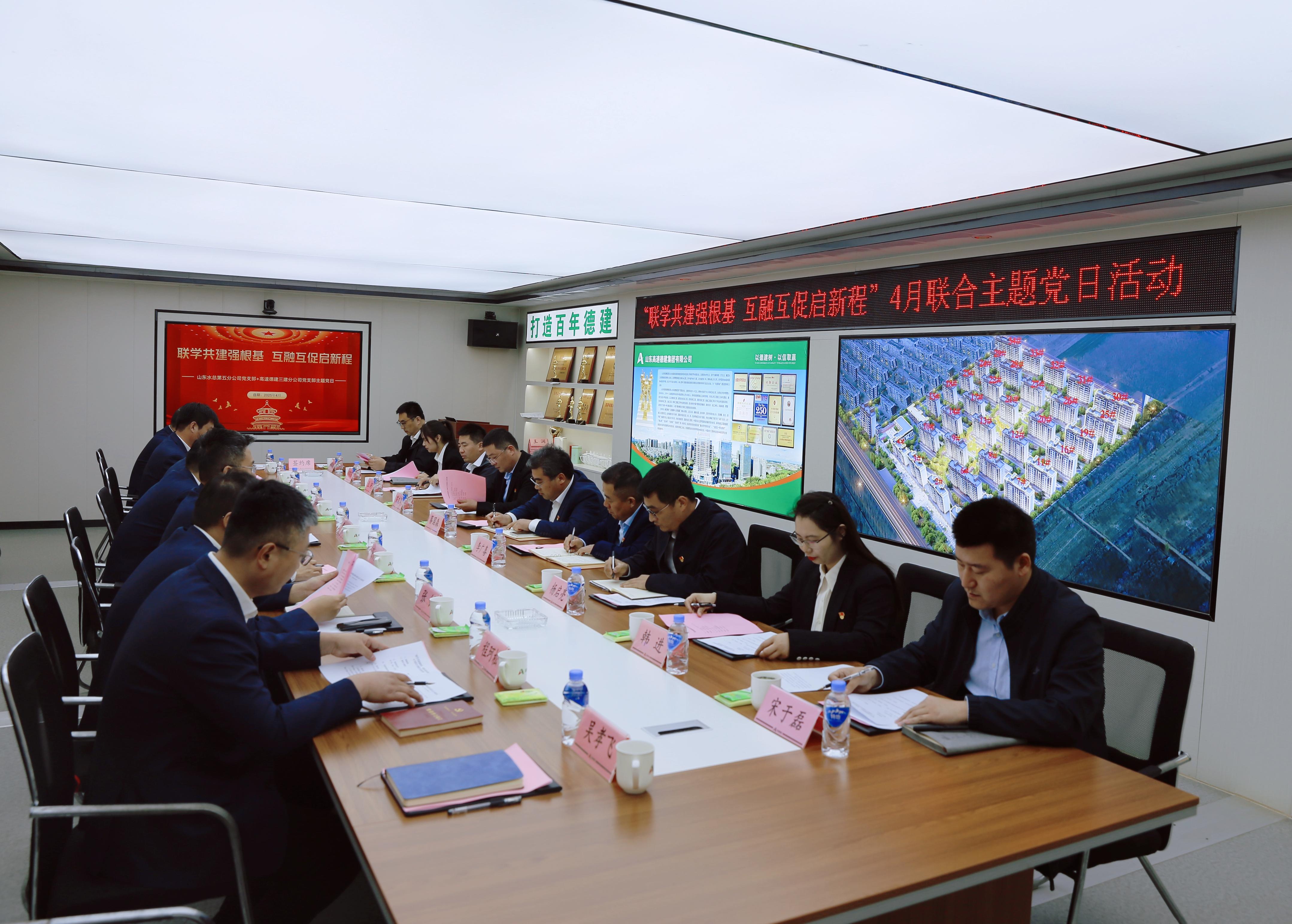 4月14日,山東水總第五分公司黨支部與高速德建三建分公司黨支部開展“聯學共建強根基 互融互促啟新程”主題黨日活動。